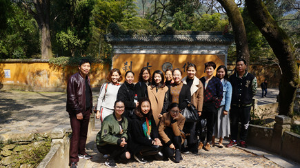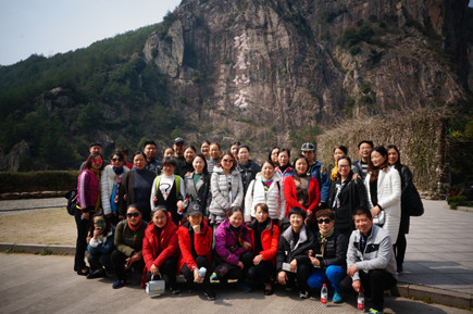 圖為第一批參加人員在瓊臺仙谷合影 上午9點(diǎn)30分,三個所共計40多位員工在集團(tuán)公司下屬的旅行社導(dǎo)游小孫的帶領(lǐng)下,從臨海結(jié)集出發(fā),去往“人與自然和合、人與人和合、人與社會和合”的“和合圣地”——天臺,游覽國清寺和瓊臺仙谷。“和合文化”是天臺山文化的精華,也是中華傳統(tǒng)文化的核心與精髓。近年來,臺州市大力推進(jìn)“和合文化”品牌建設(shè),全力打造“和合圣地”,賦予“和合文化”新的生命力。大家深處由秀美的自然山水和內(nèi)涵極豐富的佛道文化構(gòu)成的天臺山美景中,享受著自在與輕松,整個活動過程更洋溢著“健康、和諧、友好、愉悅”的濃厚氛圍。 此次“一日游”活動,不僅激發(fā)了女員工們積極向上、自強(qiáng)不息的精神,也促進(jìn)了同事之間的感情,增強(qiáng)了隊(duì)伍的凝聚力和戰(zhàn)斗力,從而營造和諧美好的氛圍。 鄭瑛芝