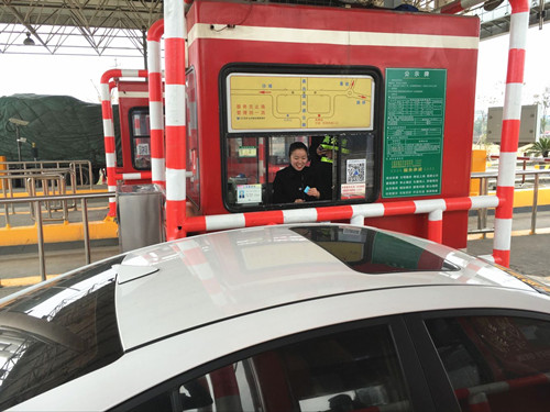 圖為收費員熱情服務(wù)過往司乘人員 一個負(fù)責(zé)將車輛引到切換成人工的ETC車道,一個負(fù)責(zé)將限行的大客和?;奋囕v引出內(nèi)廣場,一個維持秩序,因是雨雪剛放晴的天氣,一小會兒下來,工作人員的臉頰就已凍成“高原紅”,他們只是搓搓手,跺跺腳,不停穿梭于車流間。 本次春運車流大多是往西北方向流動,這讓臺州南主站僅有的兩個入口車道(其中一個為ETC車道)顯得尤為捉襟見肘。而且入口車道系統(tǒng)存在缺陷,一些種類車輛無法抓,需要手工輸全牌,導(dǎo)致通行速度緩慢。受雨雪天氣的影響,大客和危化品車被限行,也造成秩序的混亂和車輛的擁堵。然而就是在諸多困難面前,臺州南收費所全體人員直面困難,忙而不亂,創(chuàng)下一個車道一個班次發(fā)出1900多張通行卡的新記錄。 服務(wù)是這個嚴(yán)寒里的一把火,本著“熱情、高效”的服務(wù)宗旨,所有員工以親切的笑容、貼心的話語溫暖每一位過往的司乘人員,讓回家的路不再遙遠(yuǎn)。 夏蓮萍