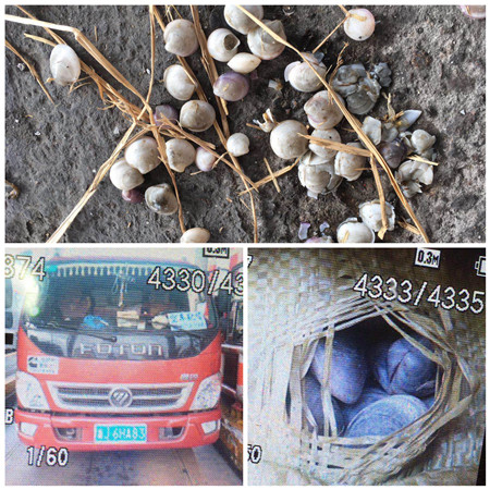 11月2日上午10:39分左右,車牌為浙J6HA83的小貨車駛入溫嶺西收費所2號崗亭,該車駕駛員稱自己運載的貨物為綠農產品,要求免費,堵塞車道一個多小時。最后在取證報警下,駕駛員交付通行費320元。 該車被篷布包著,車上貨物又被袋子緊緊包著。當工作人員要求檢查取證時,駕駛員只摳開指定的袋子,并且口子開得非常小,只讓人隱約看到貨物是貝殼。工作人員按規(guī)定要求駕駛員打開另一處取證,駕駛員以貨物被繩子綁著不好打開為由,只在前端把袋子摳了一個比硬幣大點的小洞,拿出幾個貝殼,工作人員看到其拿出的貝殼不管是在大小還是顏色上,都和他剛才指定的那袋貨物有明顯區(qū)別,于是工作人員親自用手摸進去查驗,經仔細檢查,貨物屬于貝殼中的殘次品,懷疑是飼料用途。