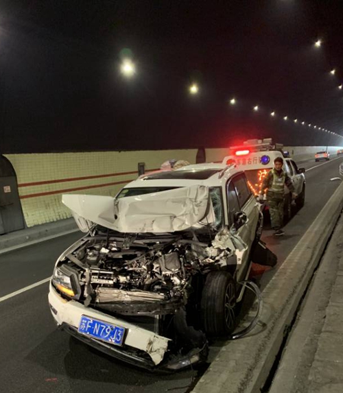 圖為事故現(xiàn)場 在很短的時間內(nèi),巡邏車就趕到現(xiàn)場。此時塘嶺隧道事故現(xiàn)場一片混亂,眾多車輛滯留。執(zhí)勤隊到達現(xiàn)場做好預(yù)警措施后,執(zhí)勤隊員勸離兩輛事故車駛往塘嶺隧道南廣場等候交警處理,引導(dǎo)擁堵車輛有序通行。巡邏車尾隨事故車輛,做好預(yù)警工作,緩慢駛向寧向隧道口。然而當(dāng)巡邏車行至寧向出口處,又有兩車發(fā)生追尾,被追尾車輛已是“體無完膚”,現(xiàn)場有大量的拋灑物,嚴(yán)重影響其他車輛通行,需拖車和清障車的救援,清障施救車輛也及時趕到,現(xiàn)場才恢復(fù)正常通車,此時距離第一起事故發(fā)生僅僅過去半個小時。 在此,臺州高速集團溫馨提醒,雖然大家歸家心切,但是春運期間高速車流量大,車速快,行車過程中盡量保持安全車距,避免人員傷亡和財產(chǎn)損失。 陳旦平