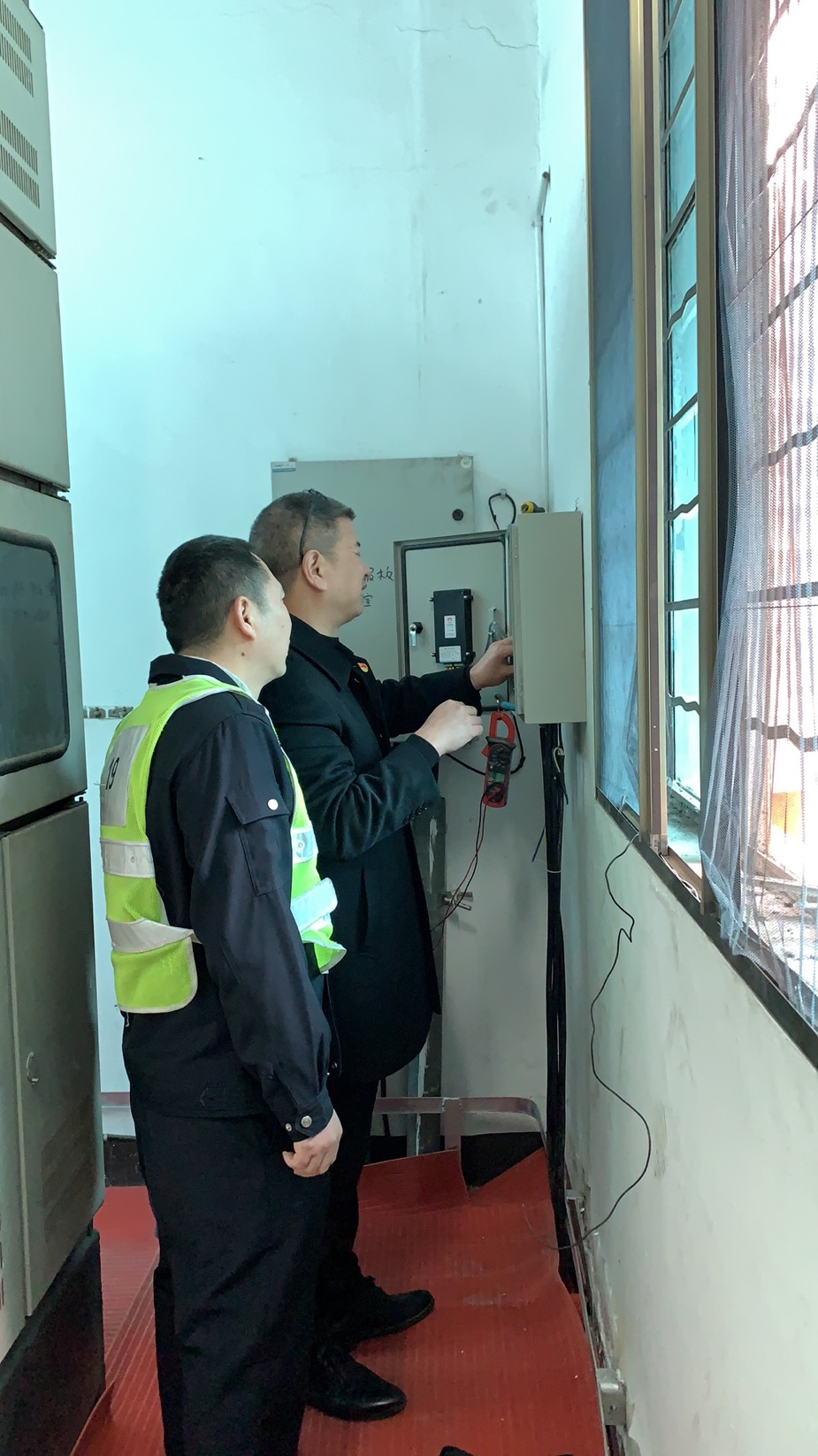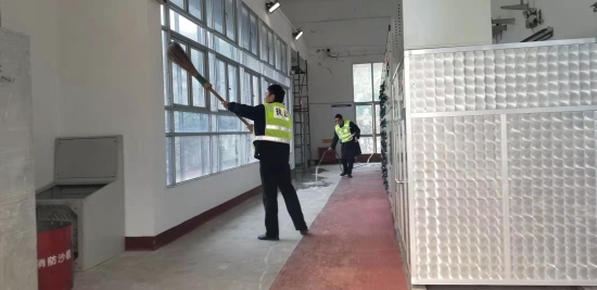 圖為設備設施檢查 當天,該所開始春運專項安全生產(chǎn)大檢查,要求春運期間要加強安全管理和責任,強化監(jiān)督檢查,抓好安全預防。10日,該所又做了一次全面的安全檢查和隱患排查,對隧道兩邊的高邊坡、豎井、高位水池、配電房、隧道內(nèi)外的各個消防設施等進行重點檢查,及時處理發(fā)現(xiàn)的問題,并做好相應檢修工作。12日,對隧道南廣場的高桿燈進行改造。14日,管理所進行了全面的衛(wèi)生大打除,操場、辦公室、食堂、寢室、衛(wèi)生間的各個角落,逐一進行清理,干凈整潔迎接新年。