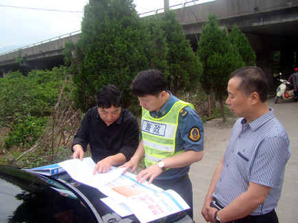 圖為公司安全總監(jiān)項同富與高速路政人員在現(xiàn)場討論整治方案 之前,高速路政大隊通過巡查,發(fā)現(xiàn)公司部分高速橋下存在較多堆放雜物、傾倒垃圾等現(xiàn)象,便提出了在橋下安裝禁令標(biāo)牌的初步方案,方案包括告示牌設(shè)計內(nèi)容和具體安裝位置。 自接到該大隊的初步整改方案通知后,公司積極配合,迅速召集相關(guān)部門開展行動,再次檢查有問題的部位,并根據(jù)檢查情況細(xì)化整改方案,以及具體落實禁令標(biāo)牌安裝形式、位置、尺寸等事宜,以更合理、科學(xué)地解決問題。 陳科