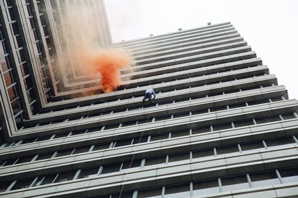 會后,在項同富的總指揮下,所有人員冒雨到現(xiàn)場觀摩高層逃生演練和消防應(yīng)急拉動滅火模擬演練。隨著一聲“演練開始”指令,大樓16層窗口冒出滾滾濃煙,被困人員使用緩降器順利降至5樓室外平臺。面對大樓南側(cè)的“火災(zāi)”,兩組身穿專業(yè)消防服的參演人員迅速到位,一組拿水槍,一組提起滅火器,迅速撲滅火源。演練圓滿結(jié)束。消防專業(yè)人員在現(xiàn)場為大家點評演練,指出逃生、滅火過程中的細(xì)節(jié)問題和注意事項,并提醒大家面對火災(zāi),要先控火再抗火,掌握科學(xué)的滅火方法。