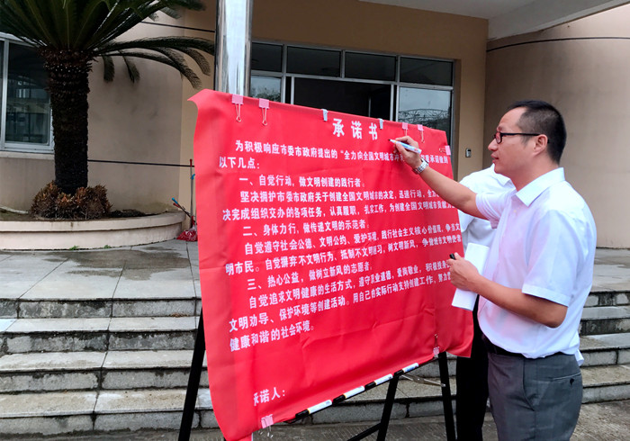 圖為動(dòng)員會(huì)現(xiàn)場(chǎng) 章海峰要求大家充分認(rèn)識(shí)創(chuàng)建全國(guó)文明城市的重要性,立足崗位,樹窗口形象,展行業(yè)新風(fēng),用自己的實(shí)際行動(dòng)支持創(chuàng)建工作。此次創(chuàng)建工作,時(shí)間緊、任務(wù)重,需要全體人員迅速行動(dòng)起來,從我做起,從細(xì)節(jié)做起,從點(diǎn)滴做起,逐層壓實(shí)責(zé)任,確保萬無一失。文明城市創(chuàng)建工作不僅僅是政府的事,更是全體市民的事,也直接體現(xiàn)了一個(gè)城市的幸福指數(shù),大家要以“一流的城市環(huán)境、一流的公共秩序,一流的服務(wù)水平、一流的精神面貌”迎接測(cè)評(píng)。