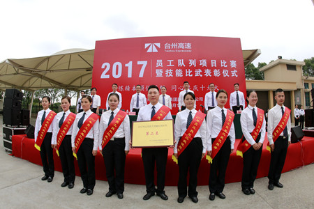 “立正、向后轉(zhuǎn)、齊步走、正步走……”10月19日下午,臺(tái)州收費(fèi)所管理房廣場上,伴隨著一聲聲嘹亮的口號,傳來一陣陣整齊有力的步伐聲。6支收費(fèi)所、隧道所代表隊(duì),正在場上進(jìn)行緊張的隊(duì)列比賽。最后經(jīng)過激烈角逐,溫嶺西收費(fèi)所代表隊(duì)獲得了隊(duì)列項(xiàng)目的第一名。隨后,集團(tuán)舉行了以“煉精本領(lǐng)保暢通、同心共慶十九大”為主題的員工技能比武總結(jié)表彰儀式,對在技能比武獲獎(jiǎng)的員工和集體進(jìn)行了隆重表彰!
