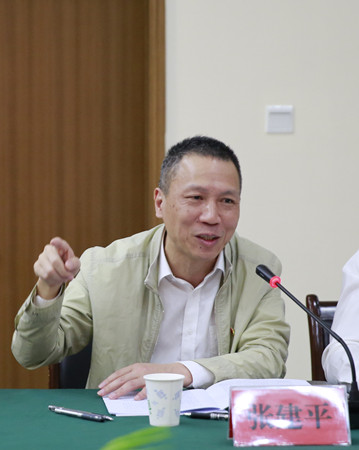 圖為集團(tuán)黨委副書記、副董事長(zhǎng)、總經(jīng)理張建平介紹集團(tuán)相關(guān)情況