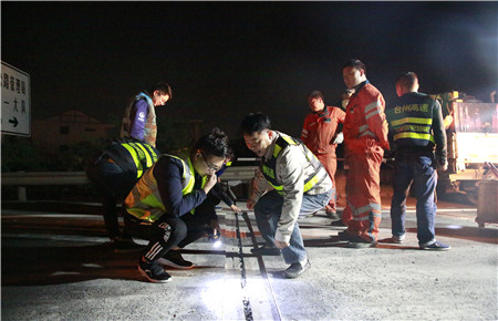 “橋梁伸縮縫修理小組,錐形標(biāo)志擺放長(zhǎng)度不足,施工點(diǎn)燈光不足,尤其下半夜運(yùn)料車駕駛員疲勞,極有可能闖入施工區(qū),請(qǐng)施工監(jiān)理單位嚴(yán)加管控,確保安全。”23日凌晨2點(diǎn),工程部對(duì)施工、監(jiān)理單位發(fā)出指令。施工期間經(jīng)常都會(huì)有類似于此的細(xì)節(jié)命令不斷提出。工程部連帶負(fù)責(zé)人共有7名專業(yè)技術(shù)人員,每晚緊盯施工現(xiàn)場(chǎng)指導(dǎo)監(jiān)督施工,嚴(yán)格把控好安全關(guān)、質(zhì)量關(guān),全過(guò)程嚴(yán)格管理。第二天仍然堅(jiān)持辦公處理日常事務(wù),下午定時(shí)召開工地現(xiàn)埸碰頭會(huì)協(xié)調(diào)會(huì)解決相關(guān)問(wèn)題,爭(zhēng)分壓秒搶施工進(jìn)度。壓力即是動(dòng)力,戰(zhàn)斗在一線的工程人員始終用堅(jiān)定的信念,秉著改善路況迎接國(guó)檢的強(qiáng)大決心,發(fā)揮攻堅(jiān)不畏難的精神,再次以實(shí)際行動(dòng)生動(dòng)詮釋了高速鐵軍的內(nèi)涵。