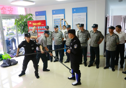 圖為物業(yè)人員現(xiàn)場練習器械使用