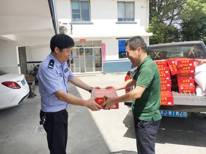 與此同時(shí),集團(tuán)總工程師江輝帶領(lǐng)工程部及收費(fèi)所相關(guān)人員到院橋派出所和交警隊(duì)開(kāi)展“送清涼”活動(dòng)。江輝代表臺(tái)州高速集團(tuán)對(duì)當(dāng)?shù)嘏沙鏊徒痪?duì)的履職盡責(zé)、通力協(xié)作表示衷心感謝,并叮囑他們?cè)诟邷靥鞖庖龊梅朗罱禍毓ぷ鳌?/span>