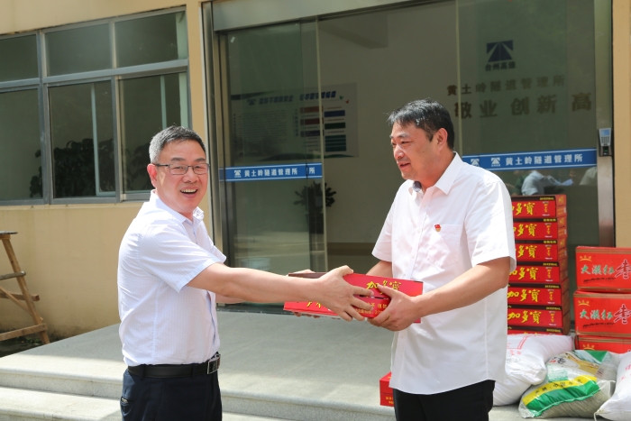 “這么熱的天氣,大家都辛苦啦!感謝你們的辛苦付出,高溫工作,一定要注意避免中暑?!奔瘓F(tuán)副總經(jīng)理陳保衛(wèi)、羅小將、工會(huì)主席項(xiàng)義超、征費(fèi)部負(fù)責(zé)人等相關(guān)人員,到房產(chǎn)公司、大溪嶺隧道所、溫嶺西、臺(tái)州南等收費(fèi)所,為一線員工送上消暑物資,慰問(wèn)堅(jiān)守在酷暑下的工作人員。
