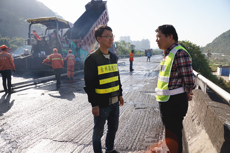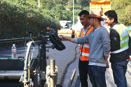 “路面銑刨有時會出現(xiàn)銑刨不完全存在夾層的現(xiàn)象,如不清理干凈則會嚴(yán)重影響攤鋪后路面的平整度?!睏罱鹆航榻B道,所以攤鋪時每道工序,他都時刻緊盯,確保攤鋪的路面不存在任何瑕疵。
