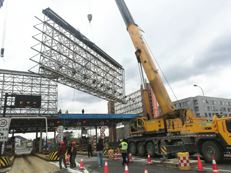 圖為臺州收費站拆廣告現(xiàn)場