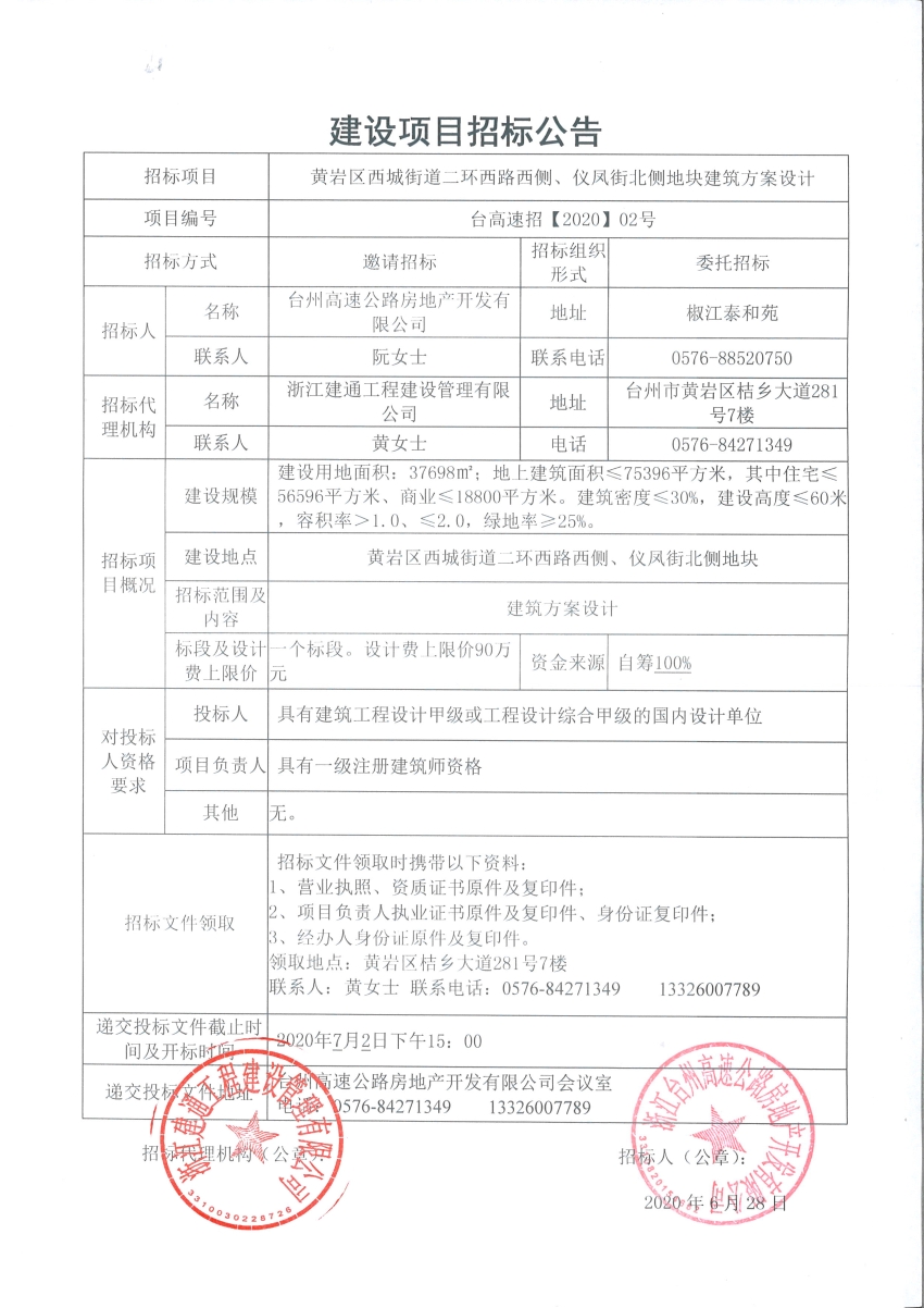 黃巖區(qū)西城街道二環(huán)西路西側(cè)、儀鳳街北側(cè)地塊建筑方案設(shè)計(jì)招標(biāo)公告