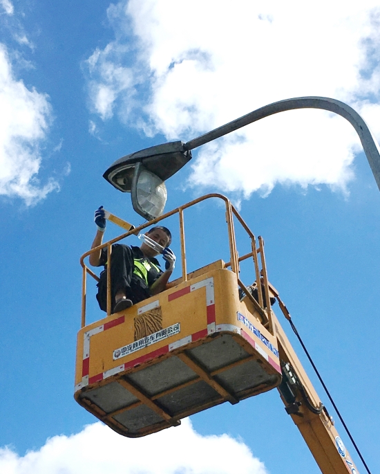 “我動作快而且都已經(jīng)在上面了,換來換去又要浪費不少時間,早點修好早點恢復(fù)通車?!碑?dāng)完成第一盞路燈,大家都勸他下來再換個人時,被他婉拒了......