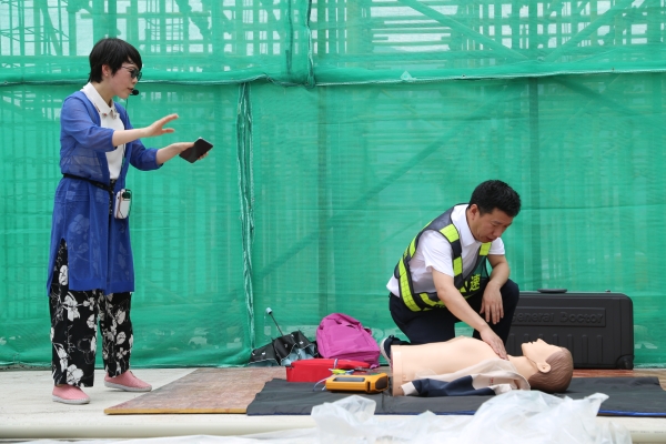 圖為活動人員參加心肺復蘇實操演練 此次演練的第二項重頭戲是心肺復蘇術(shù)培訓,建筑工地多為臨時工棚且露天作業(yè),受臺風影響較大,心肺復蘇對于遭遇意外的施工人員來說如同救命稻草。高速集團安保部邀請了臺州職業(yè)技術(shù)學院副教授李美芬到演練現(xiàn)場進行心肺復蘇術(shù)培訓,李美芬詳細講解了心肺復蘇術(shù)和AED的理論知識、操作要領(lǐng)和具體方法,并規(guī)范熟練地進行了現(xiàn)場演示。隨后參與演練的各部門代表上臺學習實操,李美芬細心指導每一個動作,耐心講解每一個要點,教學效果顯著,有效提高了參演人員的急救技能。 防汛防臺無小事,安全生產(chǎn)有保障,房產(chǎn)集團下有多個在建工程項目,此次演練能夠進一步強化現(xiàn)場人員的防汛防臺意識,普及自救急救知識,提高工程管理人員、施工就業(yè)人員的防災抗災和應急處置能力。 盧丹麗