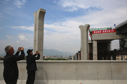 圖為部分老干部在6#立交橋上駐足拍照 老干部一行自南向北,先后來到2#隧道、7#~6#立交、8#立交施工現(xiàn)場,實(shí)地了解內(nèi)環(huán)路(黃巖段)項(xiàng)目建設(shè)進(jìn)展。每到一個考察點(diǎn),鐘彪仔細(xì)地向老干部們介紹了項(xiàng)目的總體概況、目前的施工進(jìn)展等相關(guān)情況。一路上,老干部們邊走邊看邊議,不時舉起手機(jī)拍照,記錄下考察中難忘的一幕。 看著眼前拔地而起的高架橋,老干部們對內(nèi)環(huán)路建設(shè)的快速推進(jìn)以及黃巖城市建設(shè)的發(fā)展新變化紛紛表示贊嘆,同時鼓勵全體參建人員再接再厲,抓好安全生產(chǎn),高質(zhì)量、高標(biāo)準(zhǔn)地完成建設(shè)任務(wù),為加快推進(jìn)臺州新型城市化發(fā)展而努力。 張琛
